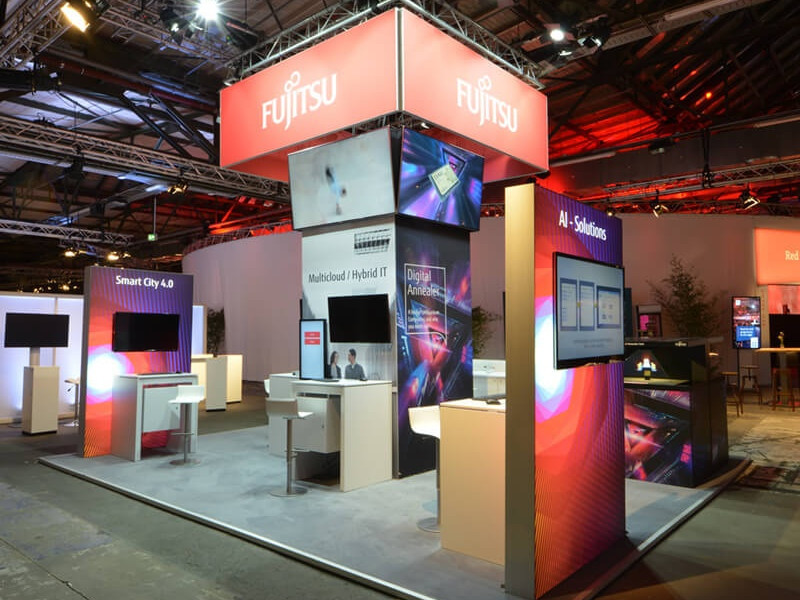 TMC Live verantwortete die gesamte Messekommunikation und den Standbau. Eine markante Deckenkonstruktion sorgte für Fernwirkung, während digitale Touchpoints mit Bewegtbild und Hologrammen für Interaktivität sorgten. Ein Coffee Bike mit Coupon-Aktion lockte Besucher*innen an, während ein temporäres Fujitsu Digital Transformation Center praxisnahe Einblicke bot. Ergänzt wurde die Strategie durch gezielte Out-of-Home-Maßnahmen rund um die Eventlocation.